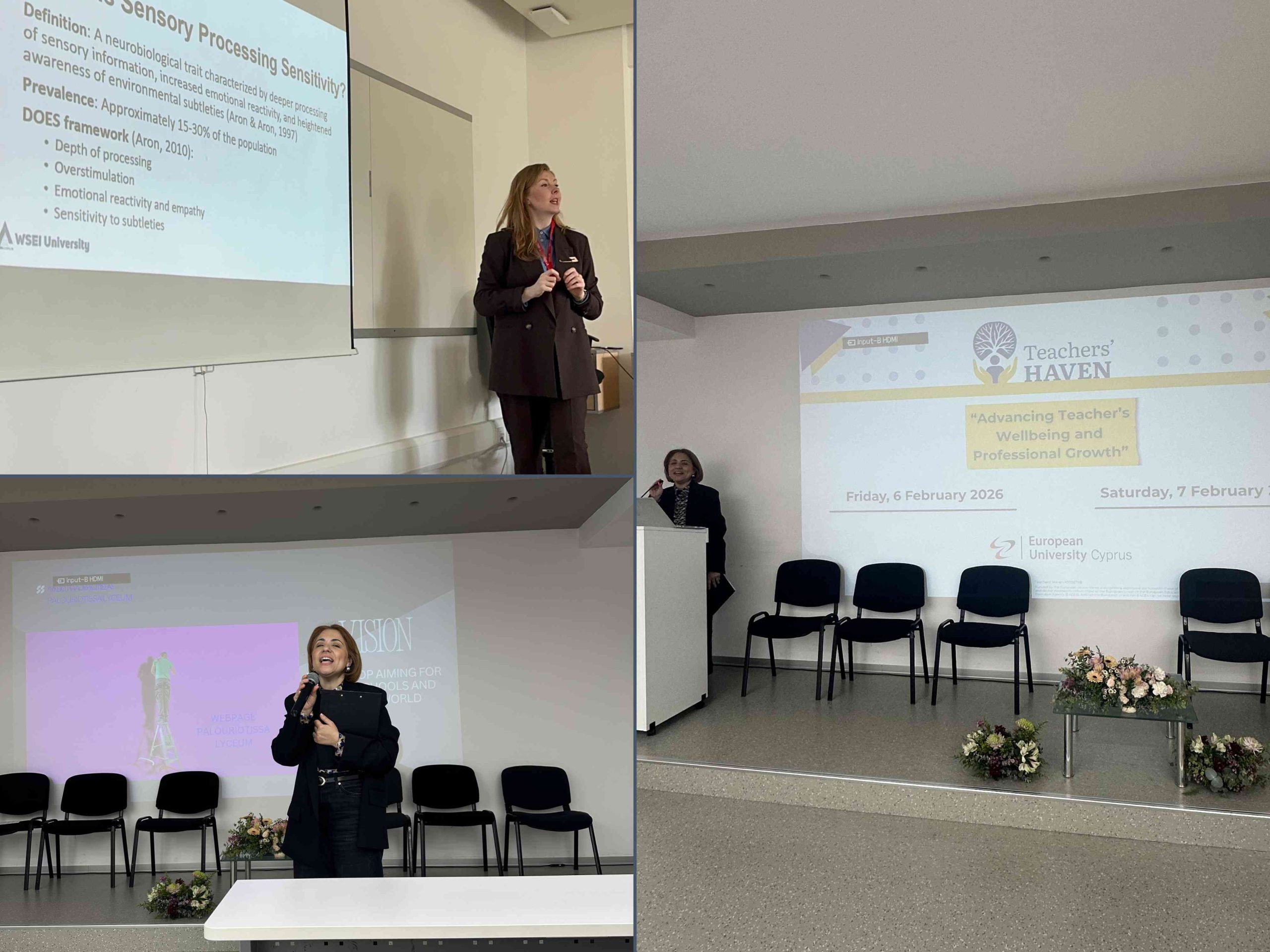 The 1st Annual Teachers’ HAVEN Congress, “Promoting Teachers’ Wellbeing and Professional Development,” took place on 6-7 February 2026 in a hybrid format hosted by European University Cyprus and online. The event gathered teachers, academics, students, and education stakeholders from different contexts, creating a vibrant space for exchange on the challenges and future of the teaching profession.